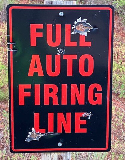 Please be aware that the use of Forced Reset Trigers (FRT) Assited Reset Trigger (ART), Binary Triger or Full Auto is allowed on range 3 only and you must be at the Full Auto Firing Line which is located 15-25 yards from the berm.Please dont shoot the sign or the steel plates.